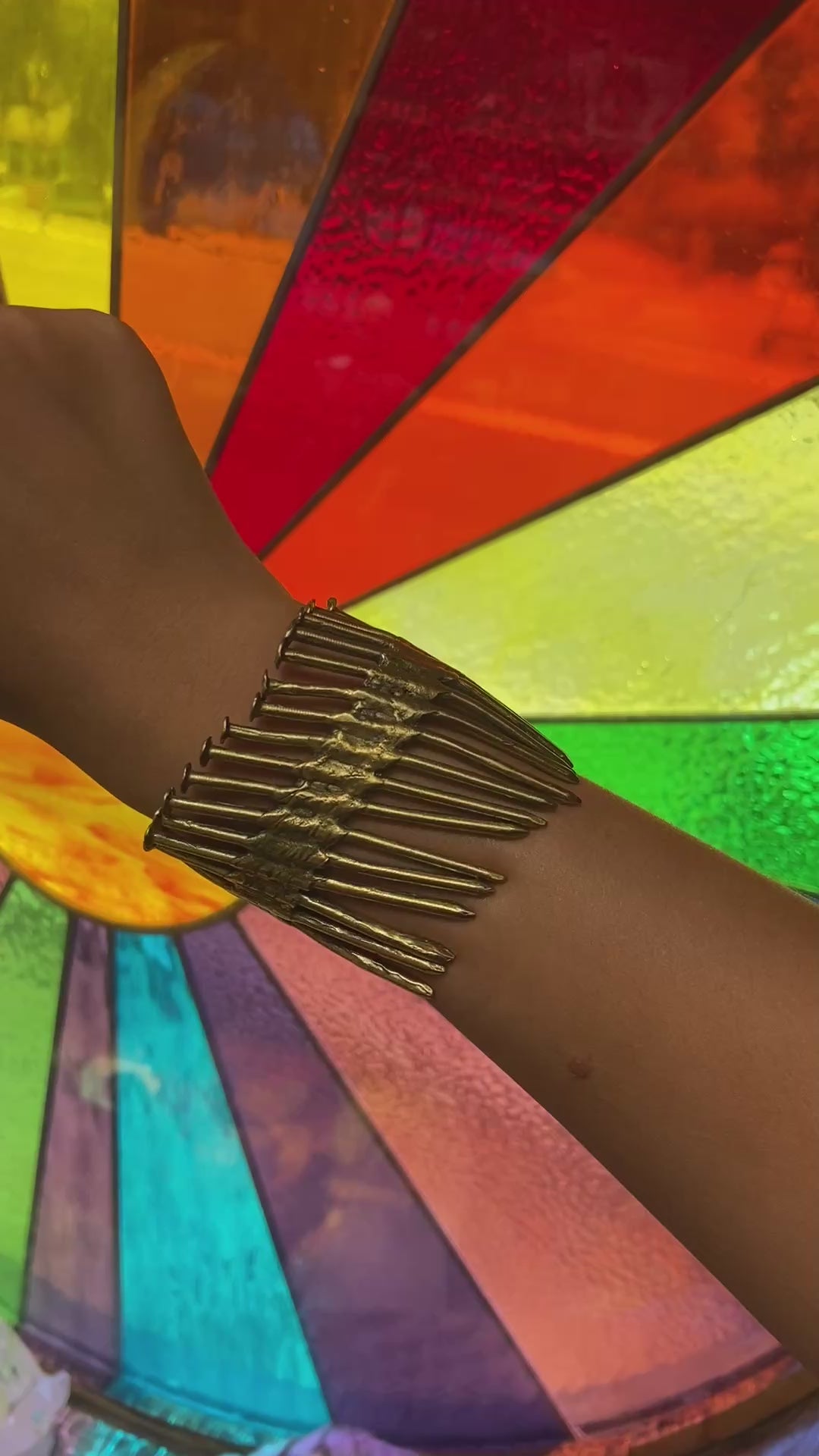 This cuff was cast from a row of nail gun nails found at a skate park while we were hanging out with our daughter. The raw, industrial lines immediately stood out, and we transformed them into a bold, edgy cuff full of character. It’s gritty, sculptural, and unexpectedly fun—perfect for those who like their adornment with a little rebellion.